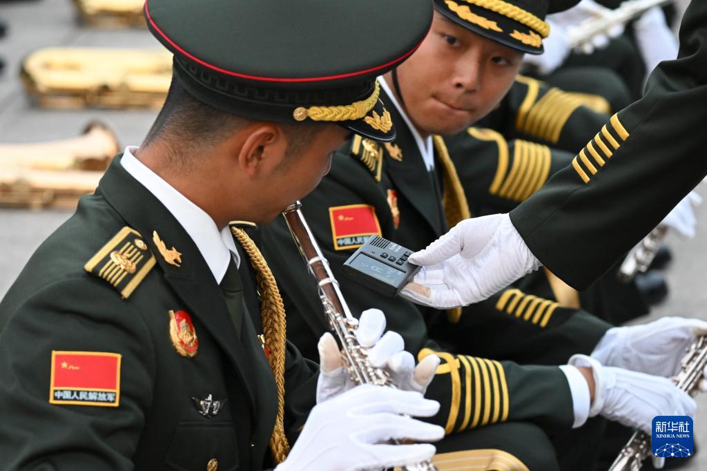 9月3日,纪念中国人民抗日战争暨世界反法西斯战争胜利80周年大会将在北京隆重举行。这是纪念大会开始前,中国人民解放军联合军乐团在准备。