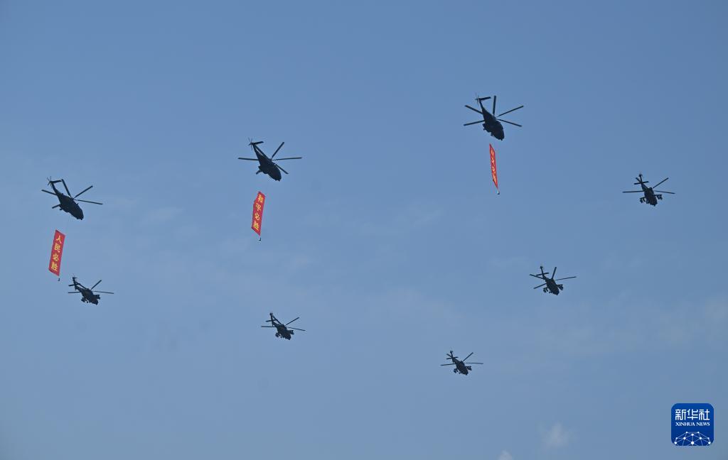 9月3日,纪念中国人民抗日战争暨世界反法西斯战争胜利80周年大会在北京隆重举行。这是空中护旗梯队飞过天安门广场上空。