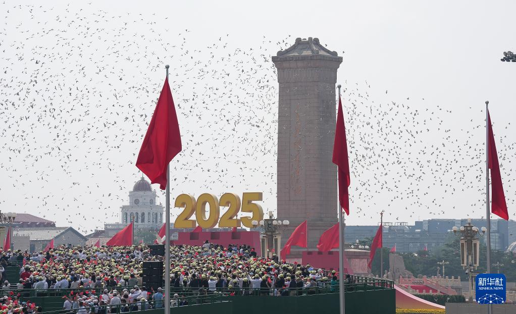 9月3日,纪念中国人民抗日战争暨世界反法西斯战争胜利80周年大会在北京隆重举行。这是纪念大会现场放飞和平鸽。