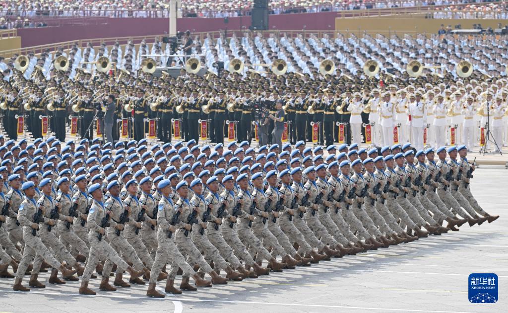 9月3日,纪念中国人民抗日战争暨世界反法西斯战争胜利80周年大会在北京隆重举行。这是维和部队方队接受检阅。