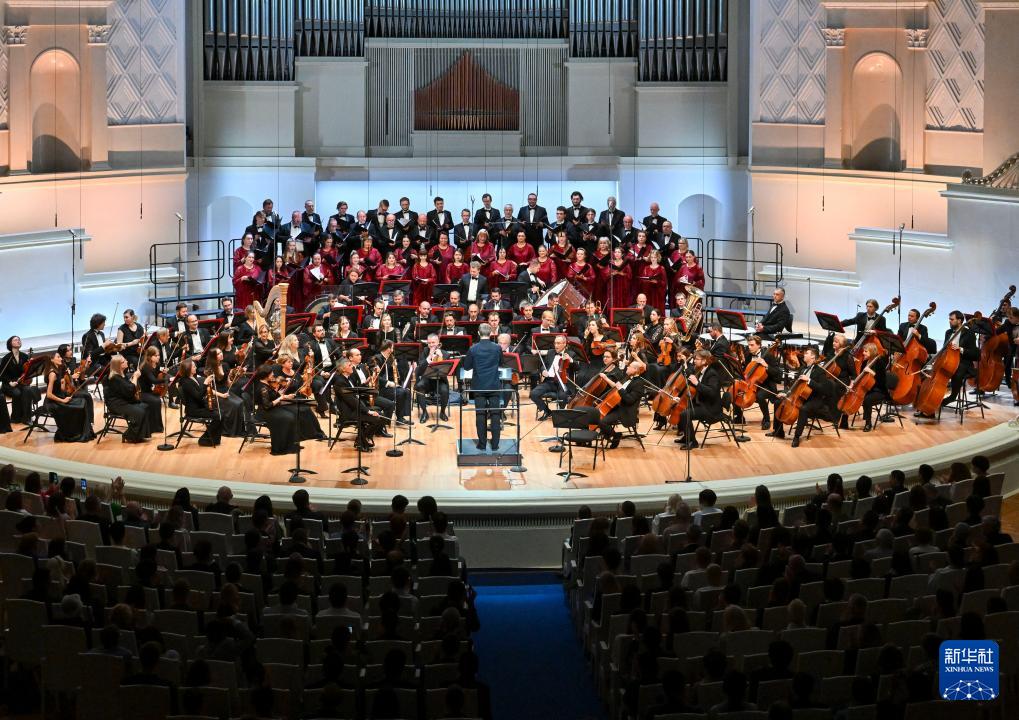 这是9月3日在俄罗斯莫斯科柴可夫斯基音乐厅拍摄的《黄河大合唱》音乐会现场。新华社记者 郝建伟 摄