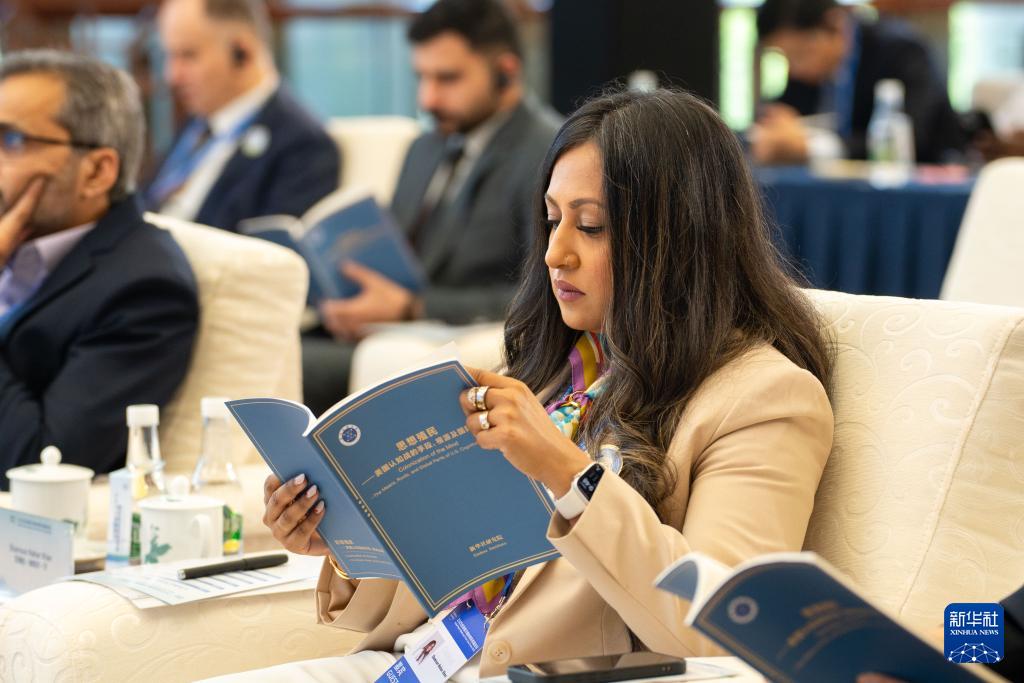 9月7日,与会代表在2025全球南方媒体智库高端论坛上阅读《思想殖民——美国认知战的手段、根源及国际危害》智库报告。新华社记者 高咏薇 摄
