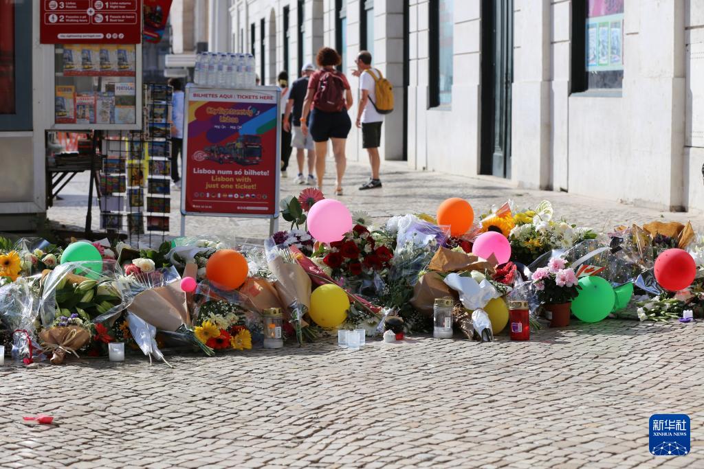 9月6日,葡萄牙里斯本市中心的有轨升降缆车事故现场摆放着悼念花束和蜡烛。