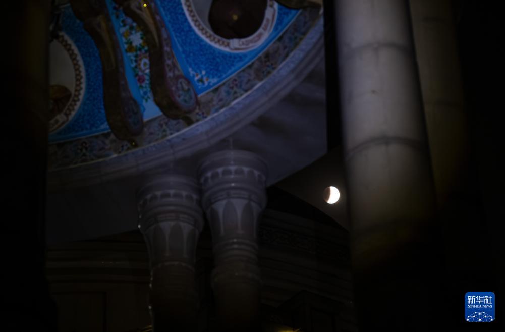 这是9月7日在塔吉克斯坦杜尚别拍摄的月食。