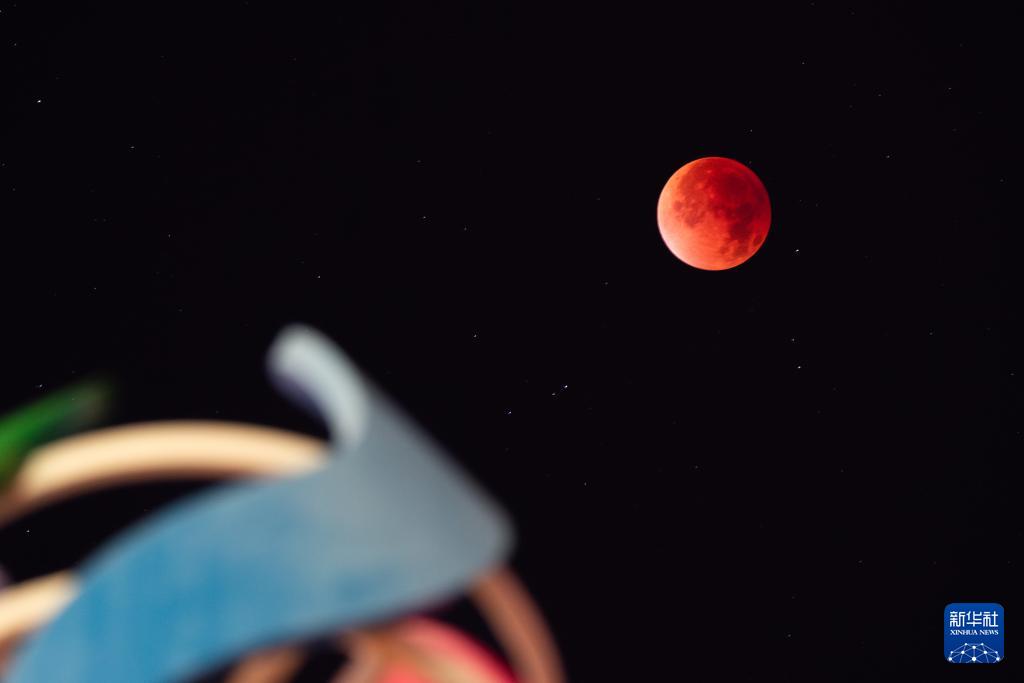 这是9月8日凌晨在云南省蒙自市拍摄的"红月亮"。