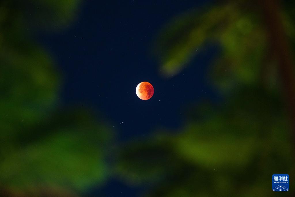 这是9月8日凌晨在云南省红河州蒙自市拍摄的"红月亮"。