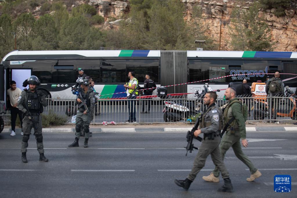 9月8日,安全人员在耶路撒冷枪击事件现场工作。新华社记者 陈君清 摄