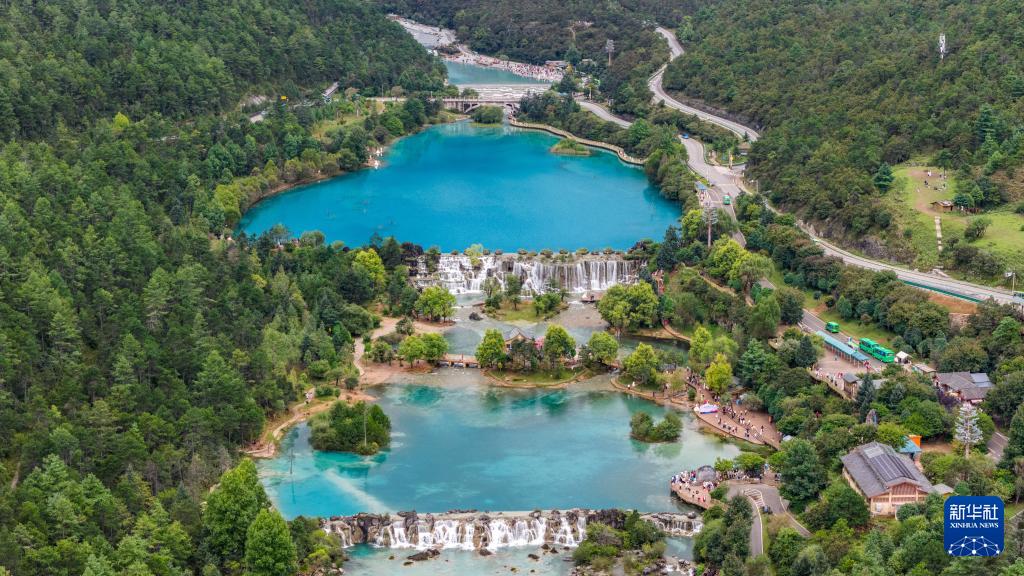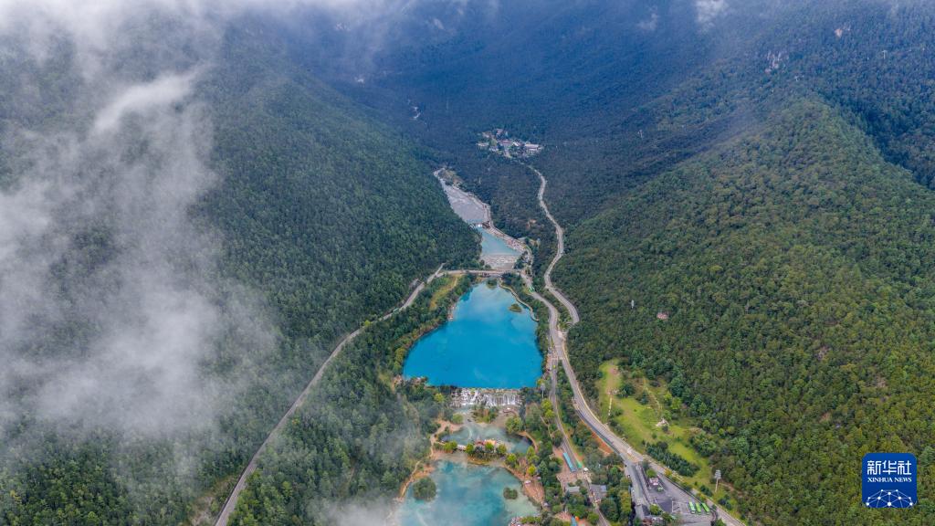 蓝月谷位于云南省丽江市玉龙雪山东麓甘海子以北、云杉坪南侧的山谷之中。9月,蓝月谷湖水充盈清澈,如同一颗颗蓝宝石镶嵌在山谷之中,吸引游客前来参观游览。