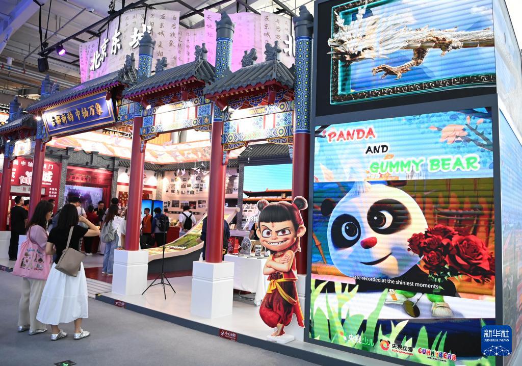 9月9日,参观者在服贸会展厅的北京东城展位参观文创产品。