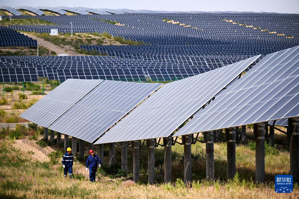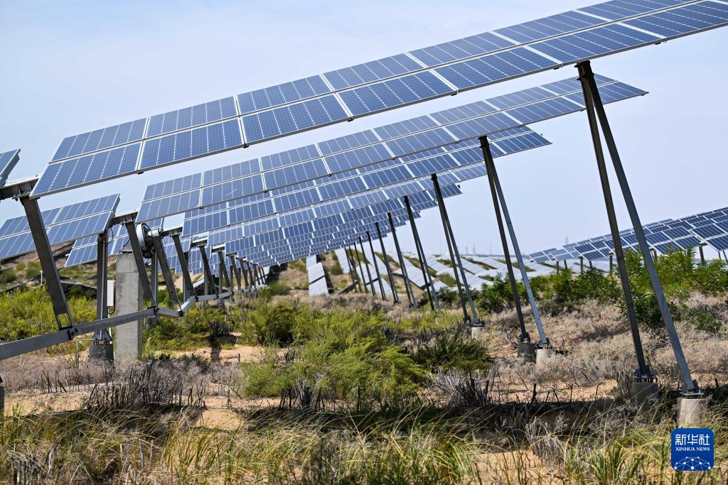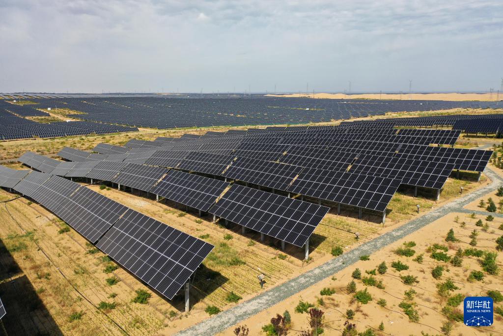 内蒙古鄂尔多斯市达拉特旗境内的库布其沙漠里,一块块蓝色光伏板鳞次栉比、铺陈排开,将沙海变成绿能涌动的“蓝海”。近年来,达拉特旗依托光伏基地建设,推广应用“光伏治沙”模式,实现光伏板上发绿电,板下治理沙漠生态,既带动新能源产业发展,也促进库布其沙漠治理。