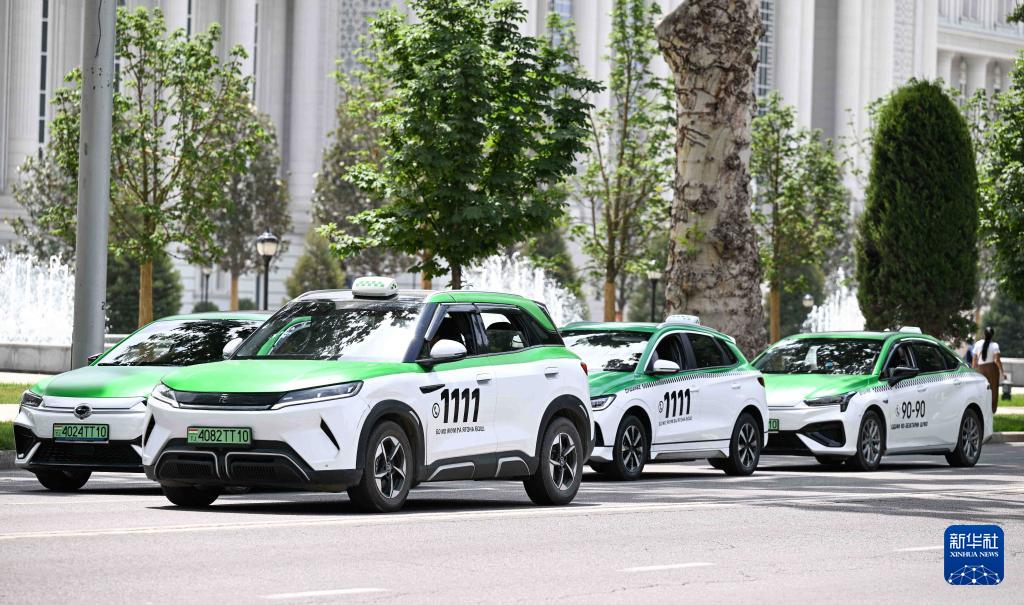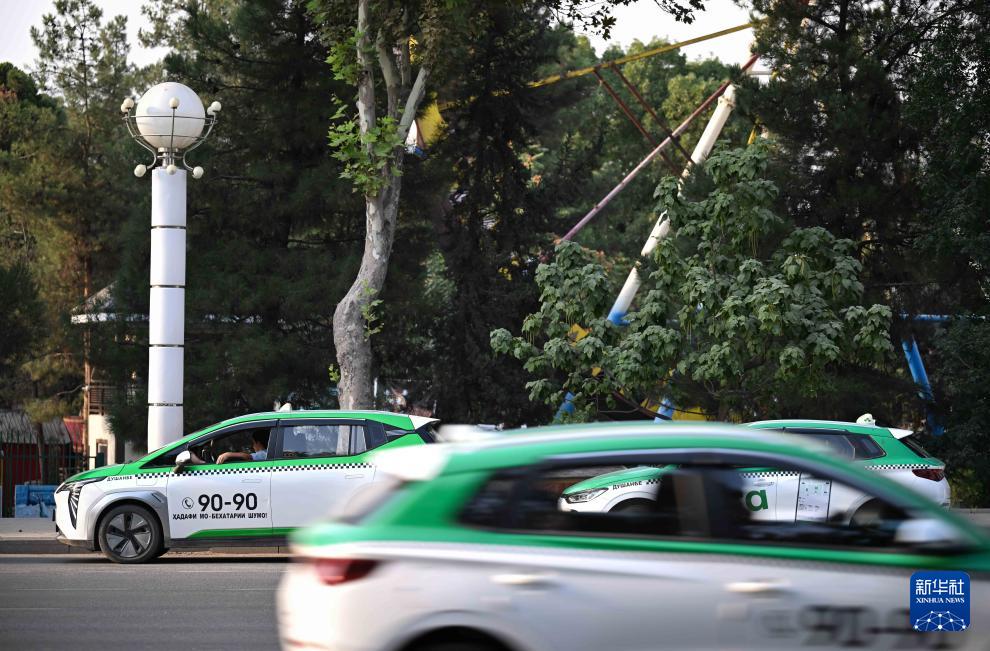 这是8月23日在塔吉克斯坦杜尚别拍摄的中国品牌新能源出租车。新华社记者 李任滋 摄
