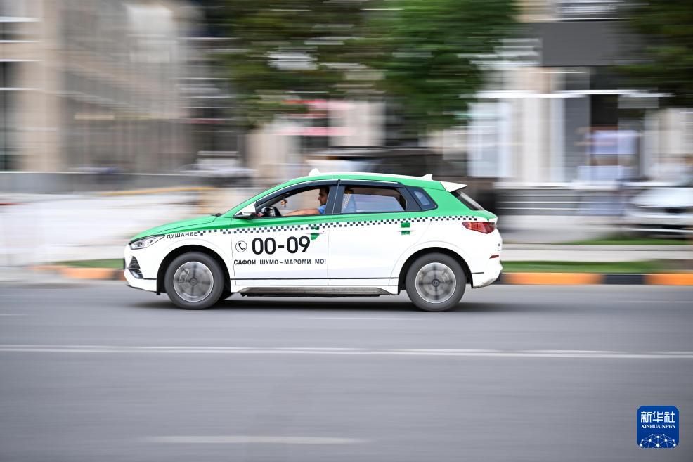 5月28日,一辆中国品牌新能源出租车行驶在塔吉克斯坦杜尚别的街道上。新华社记者 李任滋 摄