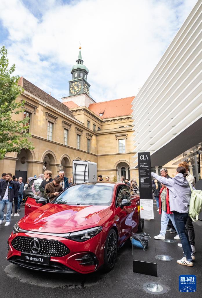 9月11日,在德国慕尼黑,人们在慕尼黑国际车展户外展区奔驰展厅参观。