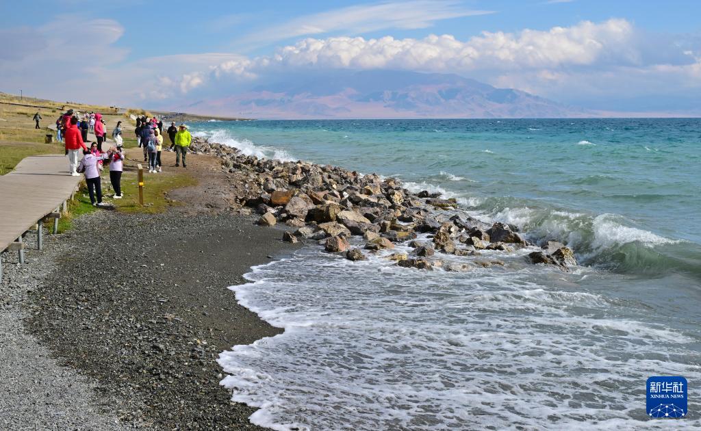 赛里木湖(简称“赛湖”)位于新疆博尔塔拉蒙古自治州,是新疆海拔最高、面积最大的高山湖泊。秋日里,赛里木湖碧波万顷,风景如画,吸引各地游客前来游览。