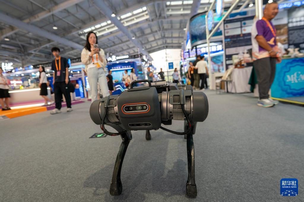 9月11日,一款机器狗在场馆中行走。