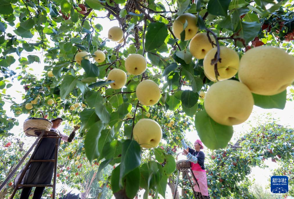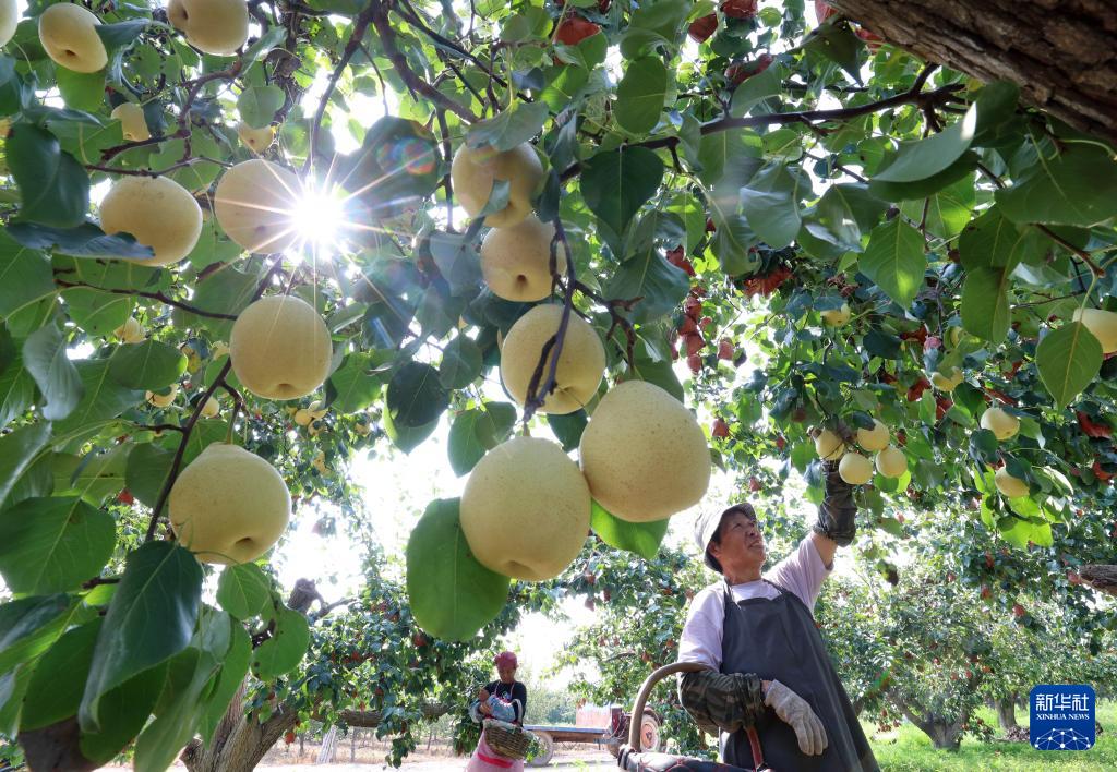 9月11日,河北省晋州市周家庄乡第七生产队农民在梨园采收鸭梨。