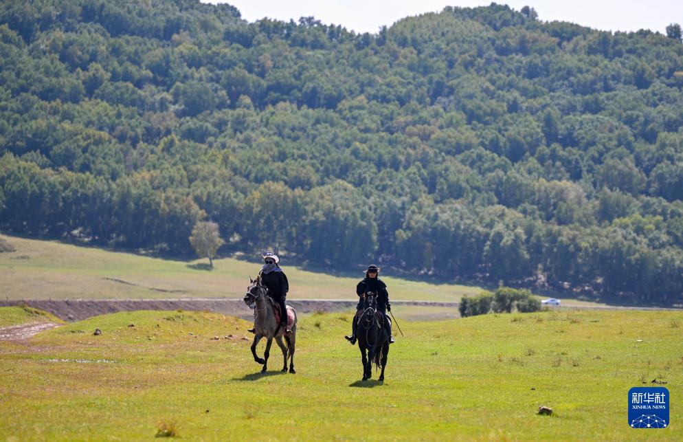 9月12日,游客在乌兰布统草原中体验骑马项目。
