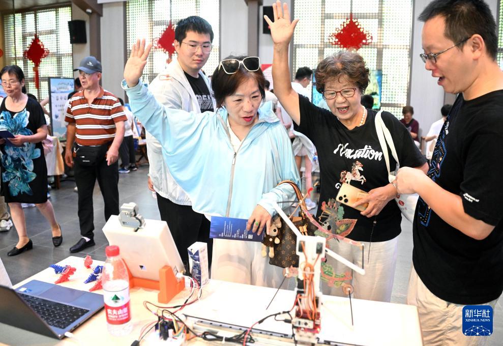 9月13日,社区居民现场体验“AI机械臂”项目。