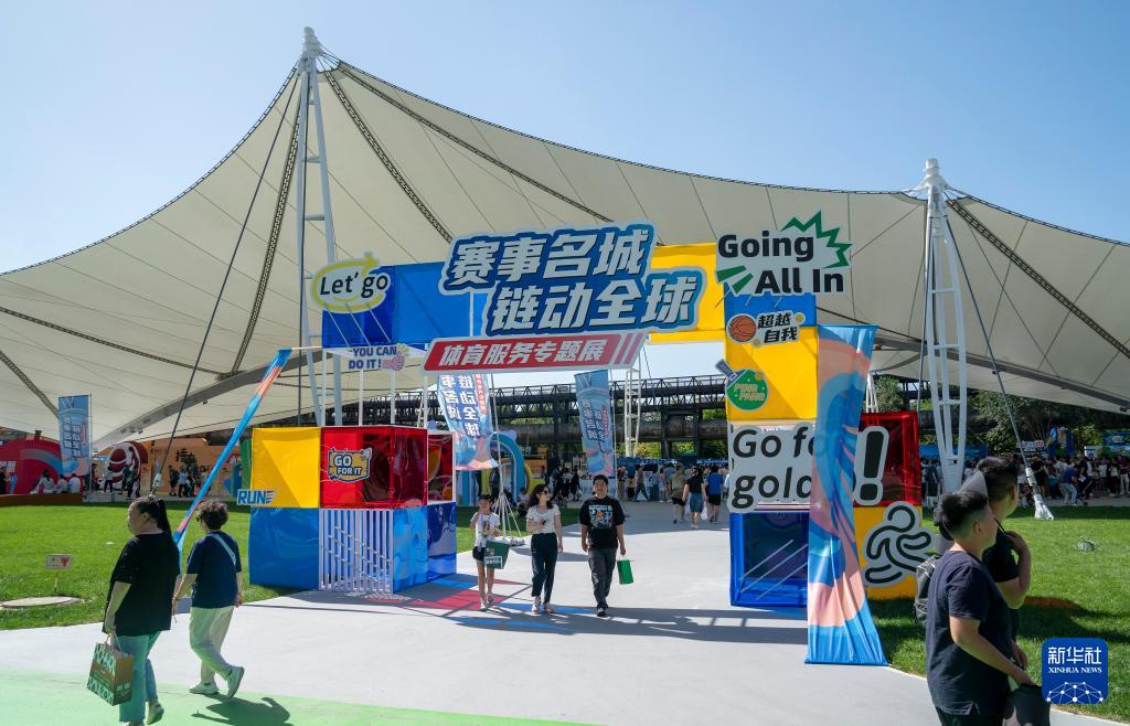 9月14日,参观者从服贸会体育服务专题展区走出。