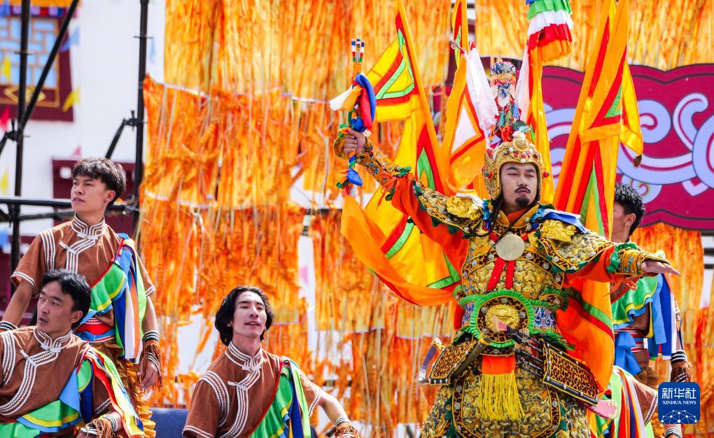 这是9月15日拍摄的开幕式上的格萨尔王舞蹈表演。