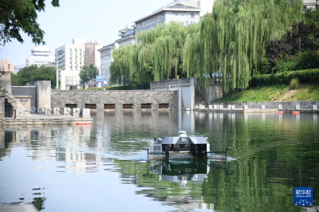 智能清洁船在西安护城河作业(2024年7月2日摄)。