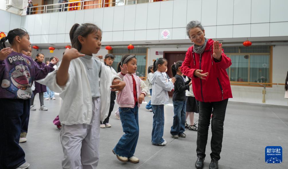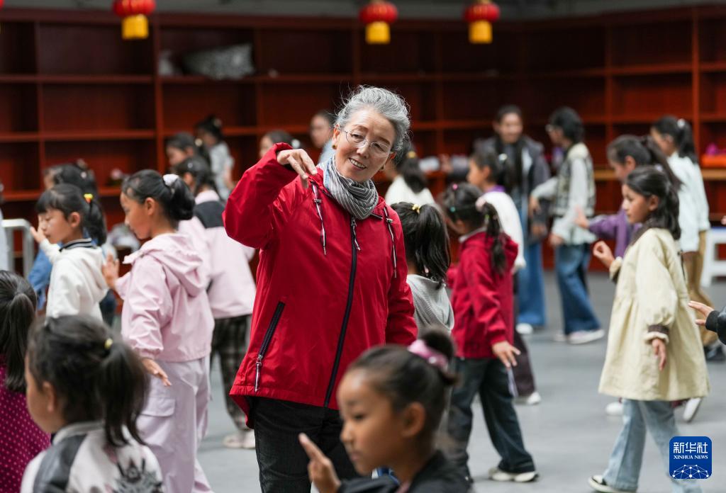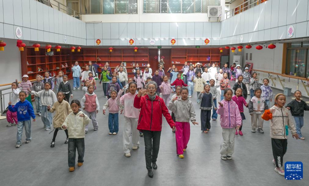 9月14日,巴桑老师在西藏自治区群艺馆带领孩子们学习藏戏表演。