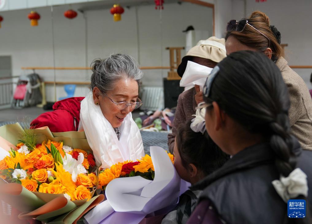 9月14日,学藏戏的孩子们在给巴桑老师献花,送上迟到的教师节祝福。