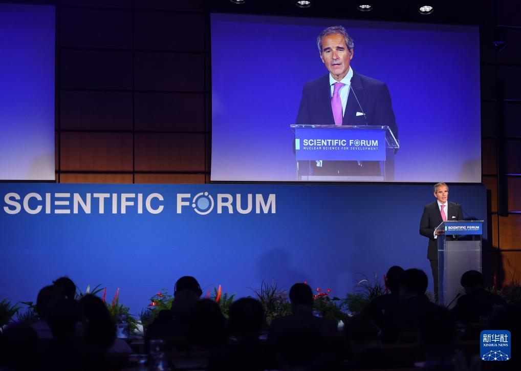9月16日,在奥地利维也纳,国际原子能机构总干事格罗西在“原子用于水资源”科学论坛上致辞。新华社记者 贺灿铃 摄