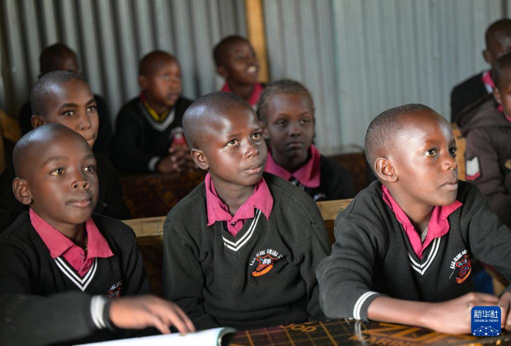 9月1日,学生们在肯尼亚西南部纳罗克郡的光明小学上课。