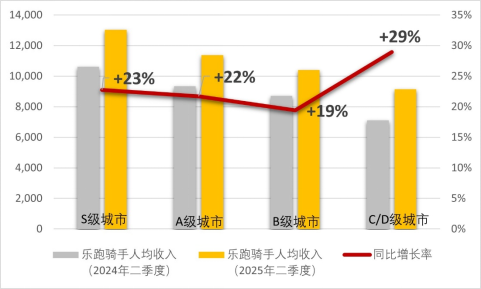▲今年二季度,各线城市骑手收入同比实现稳定增长(图:美团研究院)