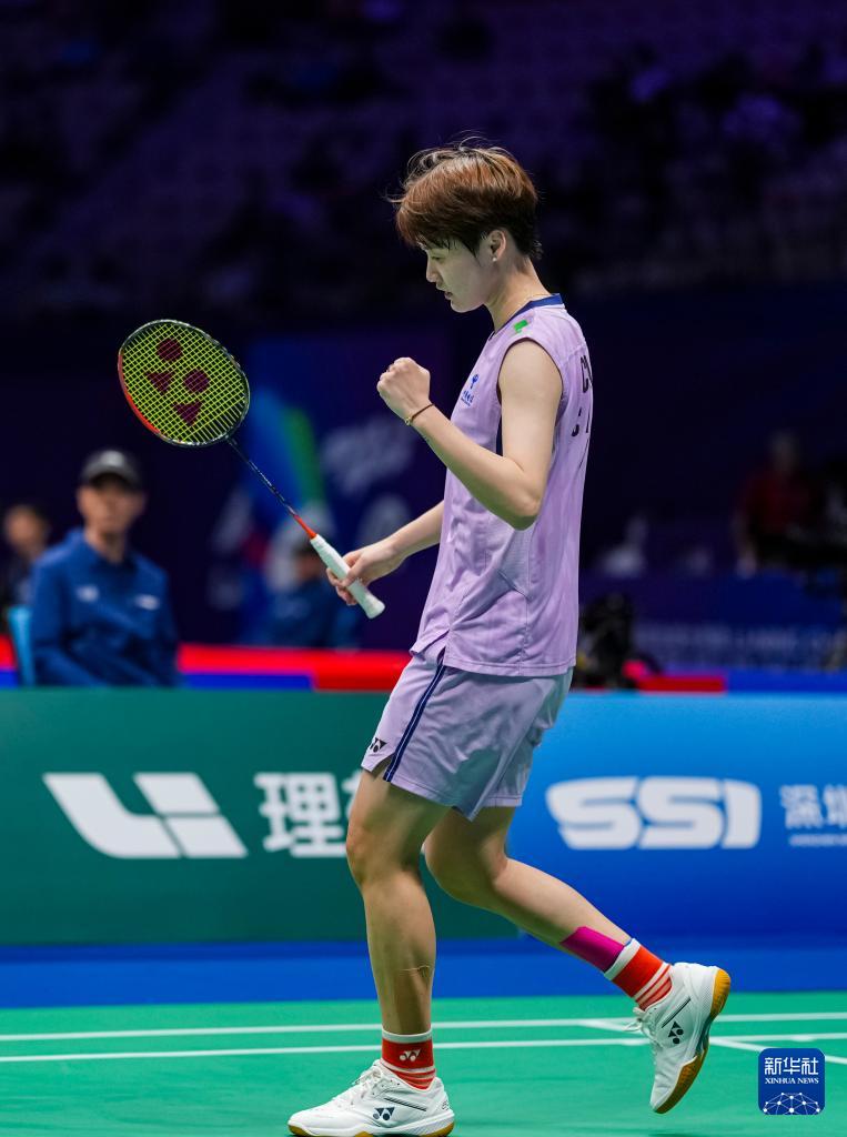 9月19日,陈雨菲在比赛中庆祝得分。