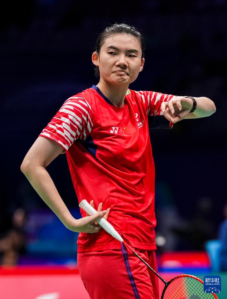 当日,在广东深圳举行的2025中国羽毛球大师赛女子单打四分之一决赛中,中国选手韩悦2比1战胜队友陈雨菲,晋级半决赛。