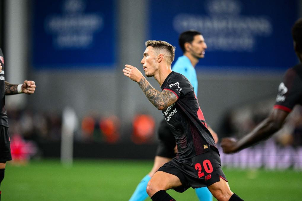 格里马尔多在比赛中。图片来源:勒沃库森官网。