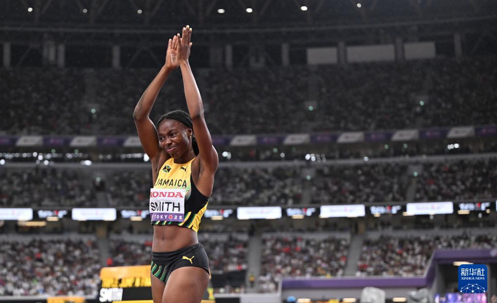 9月18日,牙买加选手史密斯在决赛中试跳。