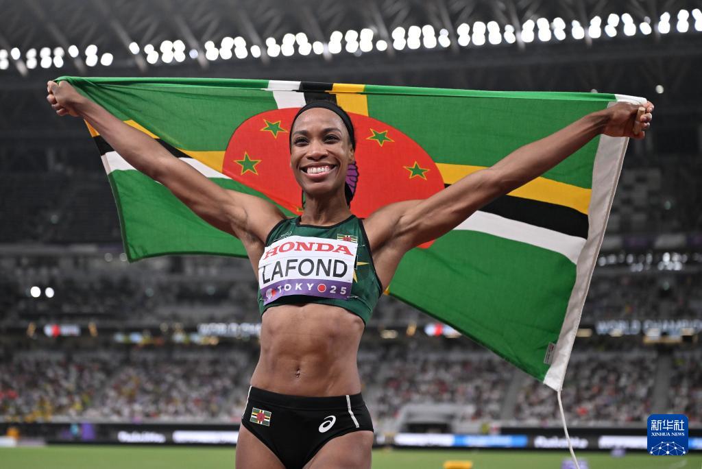 9月18日,多米尼克选手特亚·拉丰在决赛后庆祝。她获得亚军。