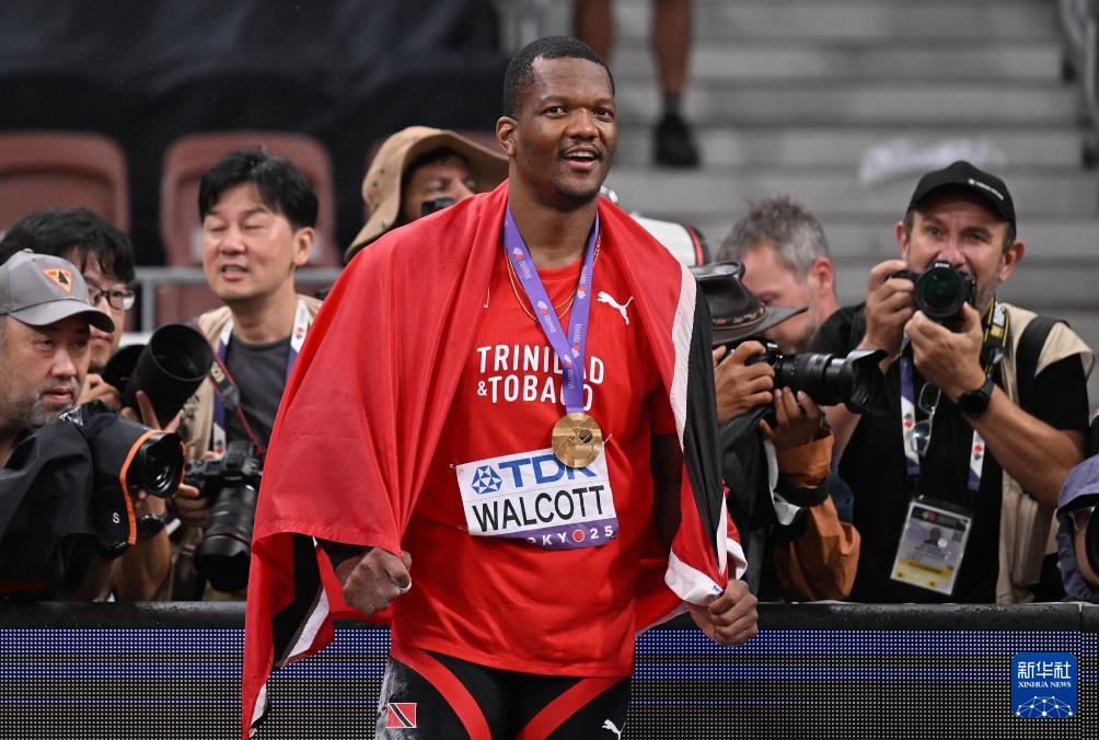 9月18日,冠军特立尼达和多巴哥选手沃尔科特在比赛后庆祝。