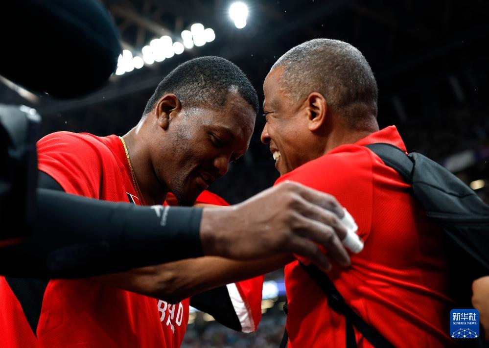 9月18日,冠军特立尼达和多巴哥选手沃尔科特(左)在比赛后庆祝。