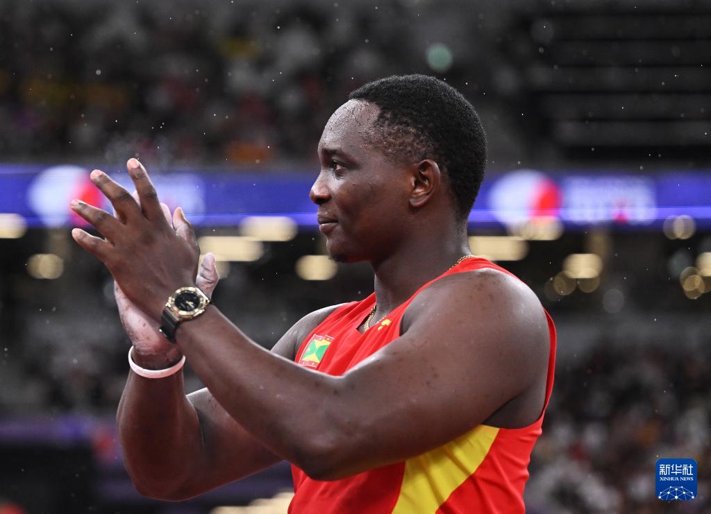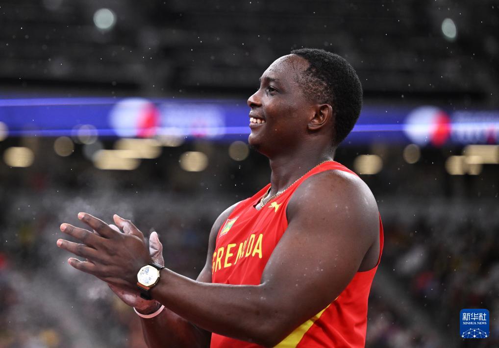 9月18日,格林纳达选手彼得斯在比试投后庆祝。最终,他获得亚军。