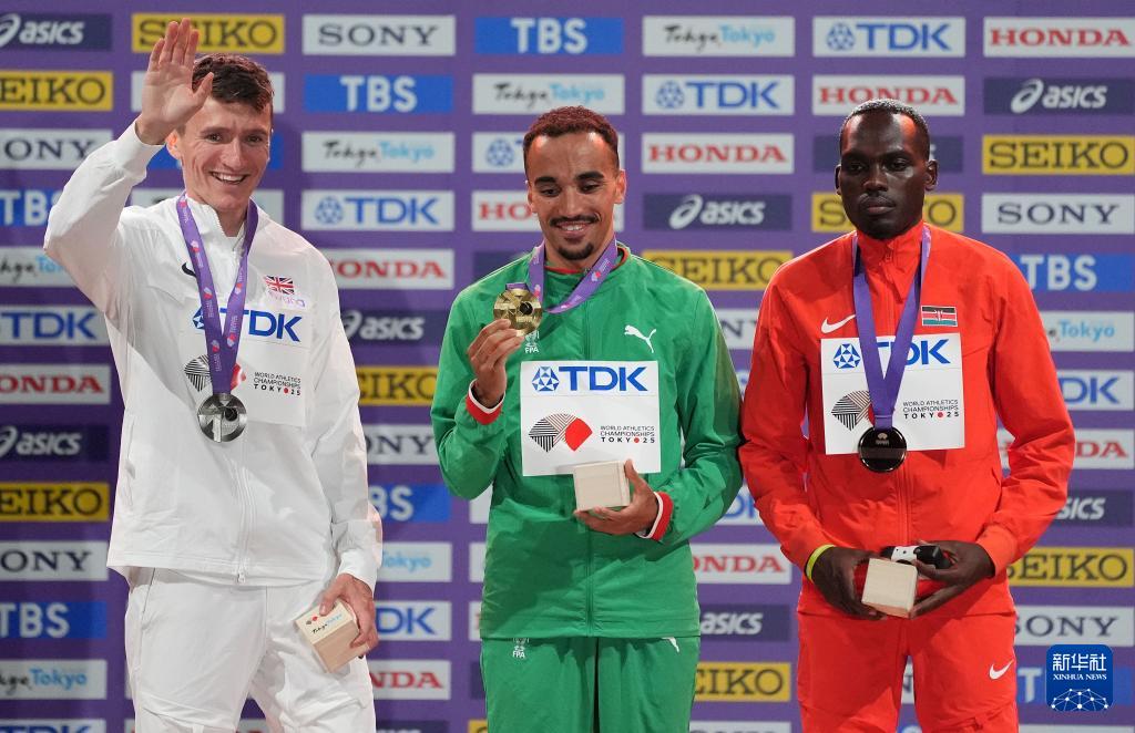 当日,2025年世界田径锦标赛男子1500米颁奖仪式在日本东京举行。