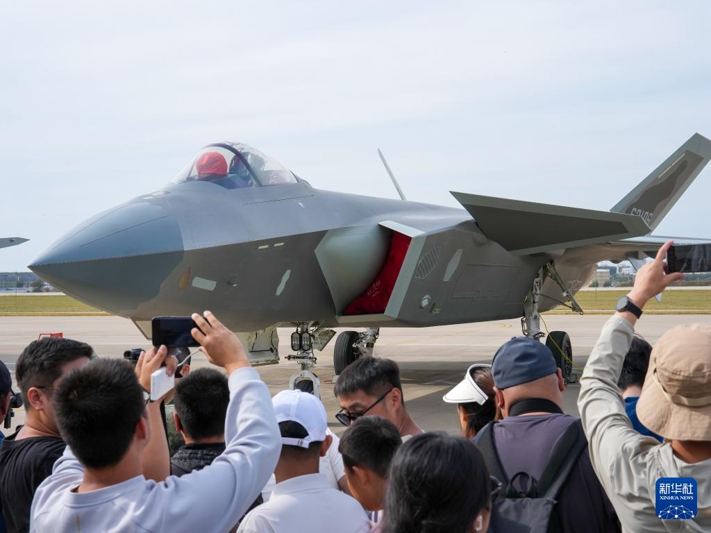 9月19日,2025年空军航空开放活动和长春航空展上,观众参观歼-20战机。