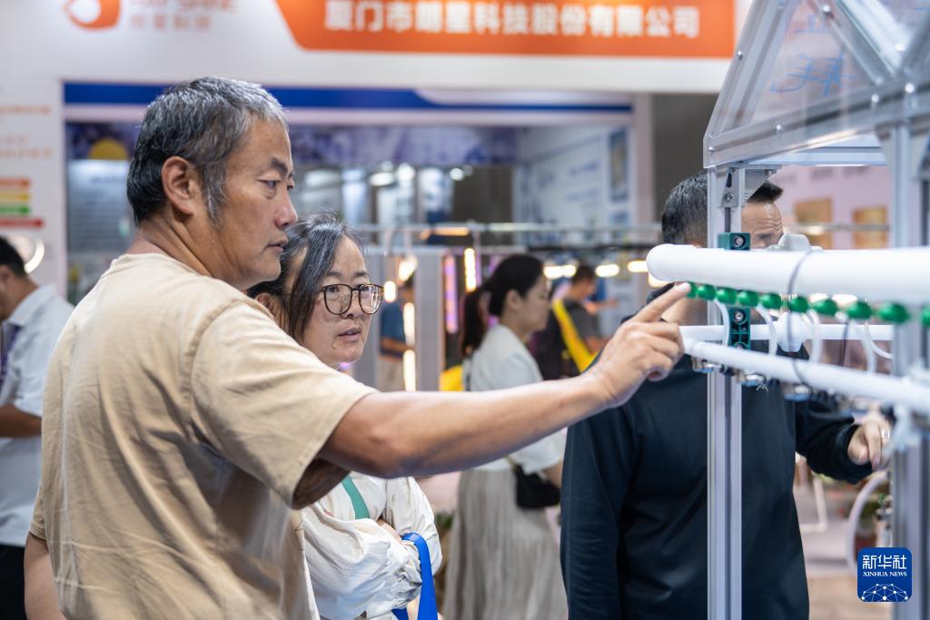 9月19日,观众在第二十三届中国昆明国际花卉展了解温室气雾设备。