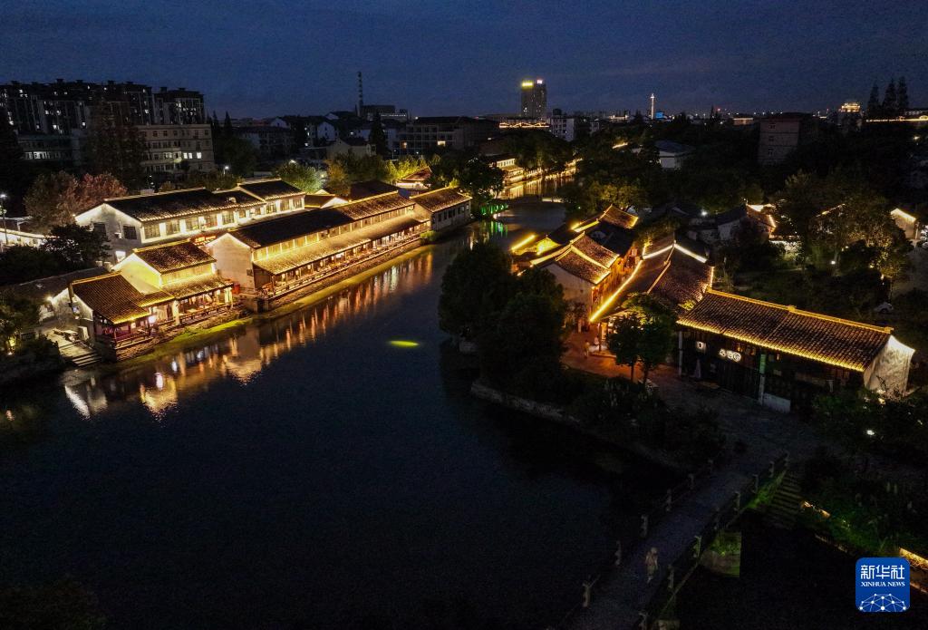 这是9月19日拍摄的夜色中的沈荡镇老街(无人机照片)。