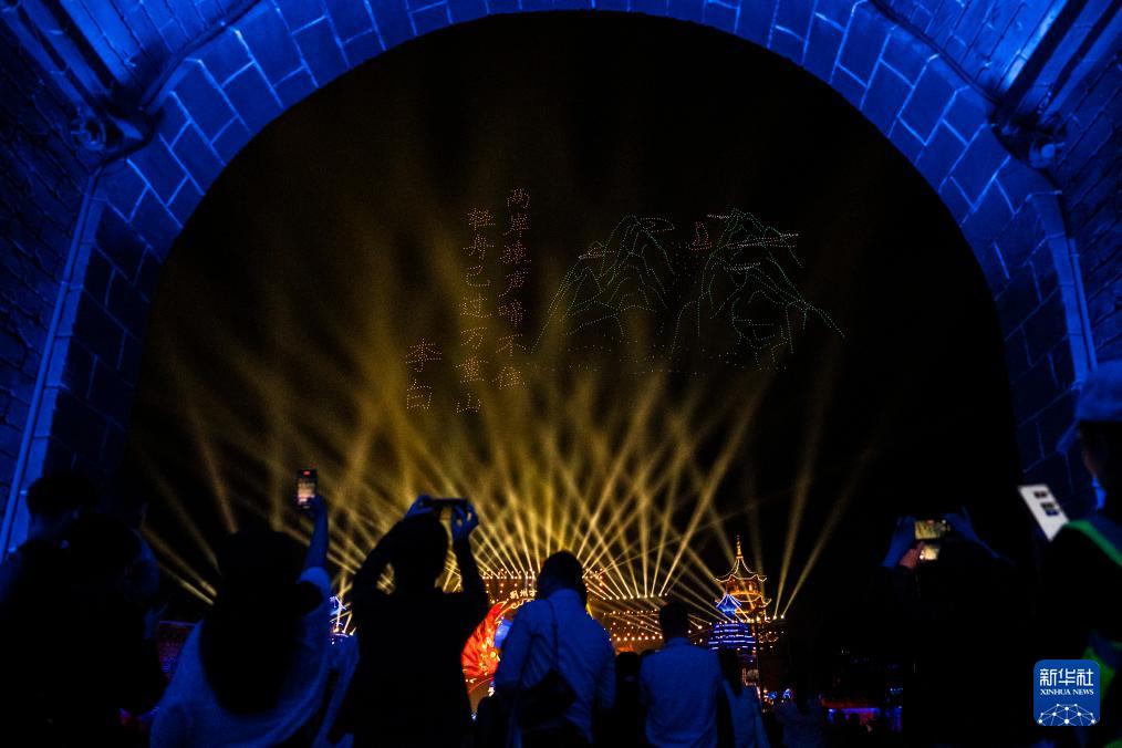 9月20日,观众在第二届楚文化节开幕式上观看无人机表演。
