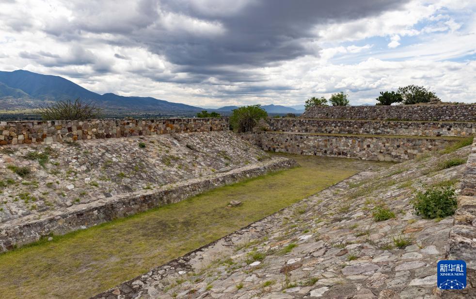 这是9月17日在墨西哥瓦哈卡州亚古尔遗址拍摄的球场遗迹。