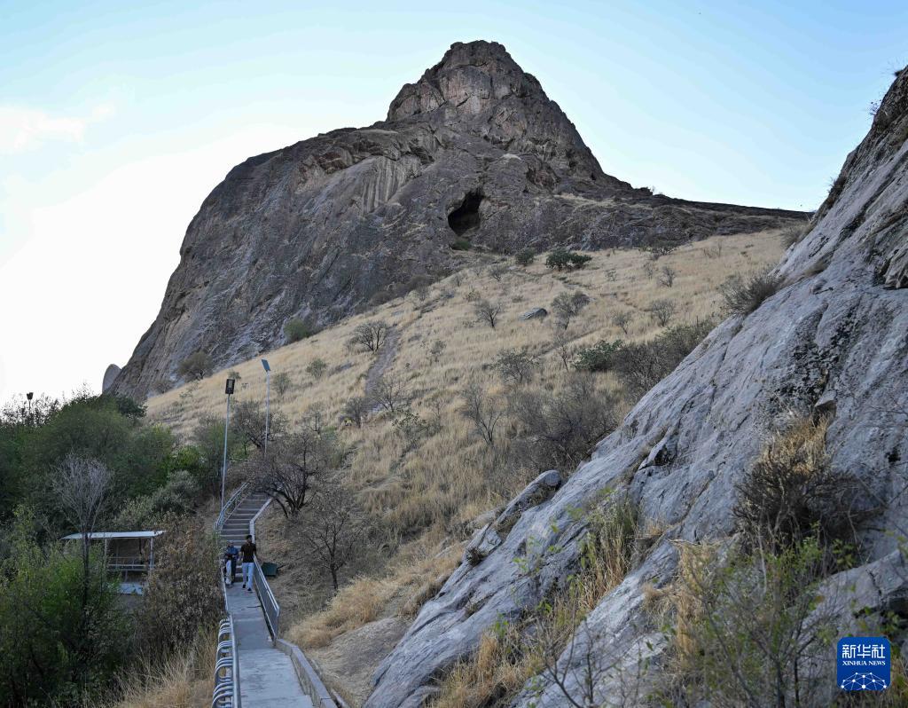 9月19日,在吉尔吉斯斯坦奥什,游客在苏莱曼山博物馆前游览。
