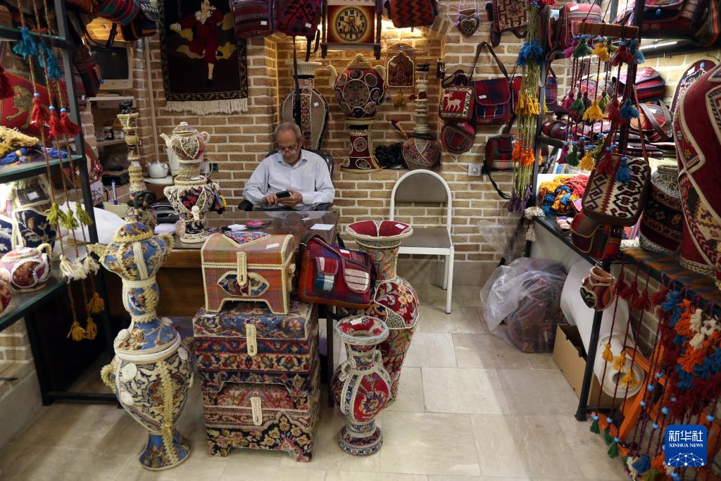 9月17日,在伊朗东阿塞拜疆省大不里士大巴扎,一名商人在店内等待顾客。