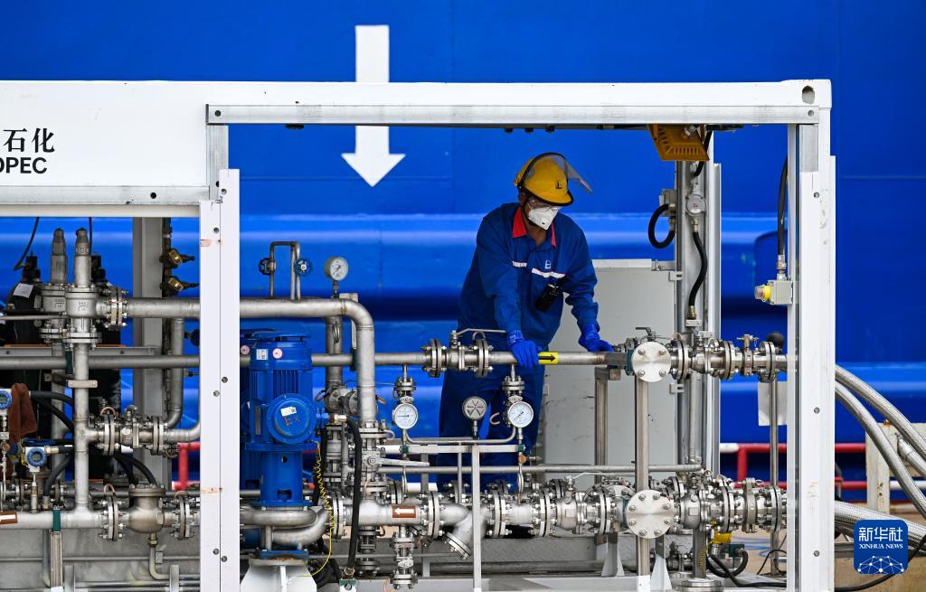 9月22日,在天津港环球滚装码头,工作人员准备进行甲醇加注作业。