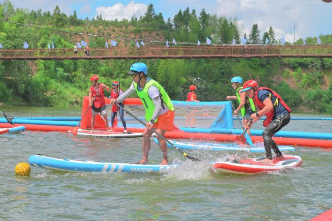 动在水面上。村边河道化身“天然赛场”,水上运动会火热上演,桨板接力、桨板球、趴板划水赛三项比拼浪花飞溅,让围观群众近距离感受“水上运动”的激情与魅力。