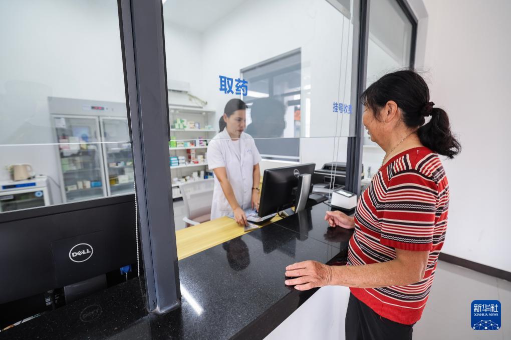 9月23日,村民在孝顺镇车客村卫生室配药。金华市金东区孝顺镇车客村卫生室内设预检分诊区、诊疗室、输液室、挂号收费、检查检验、药房等科室,2024年5月正式向周边百姓开放接诊,承担起了孝顺镇车客村以及镇西区块百姓的基本医疗及健康管理职能,辐射人口五千余人。