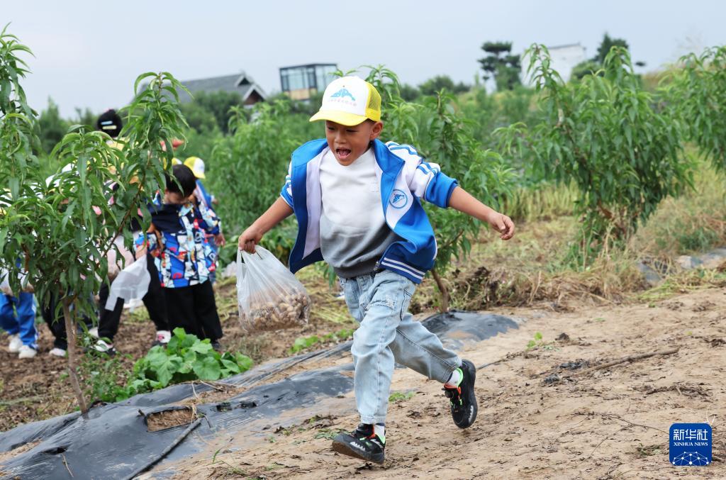 9月23日,河北省迁安市组织150余名幼儿园儿童来到亚滦湾农业公园开展研学活动。这是小朋友在亚滦湾农业公园采摘花生。